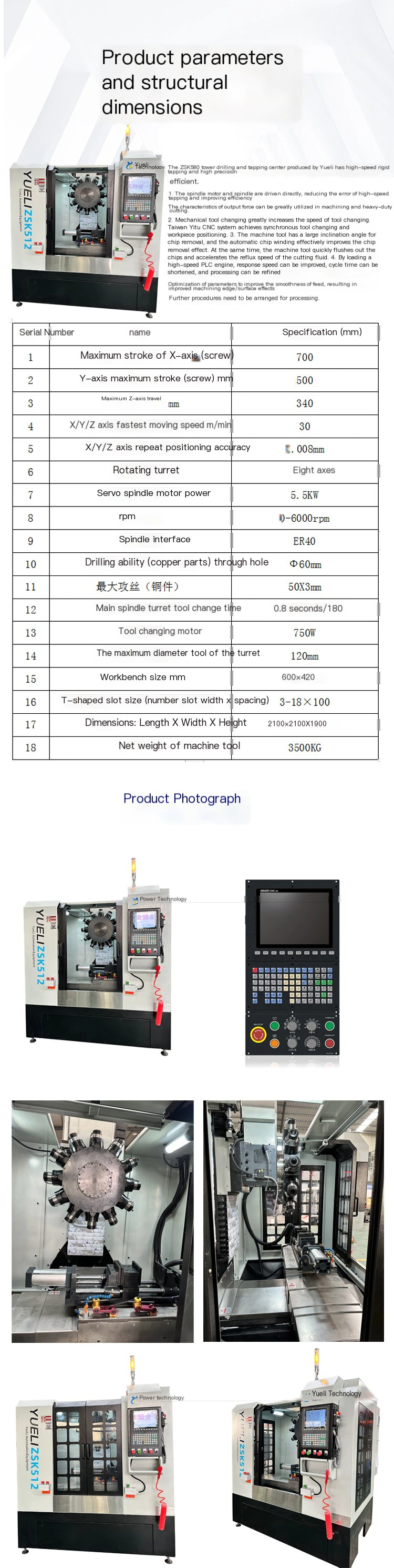 Yueli producerar tornborrning och tappningscenter ZSK580 med höghastighets styv tappning, hög precision och hög effektivitet.